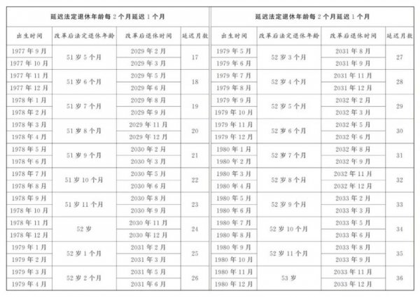 3.原法定退休年龄五十周岁的女职工延迟法定退休年龄对照表