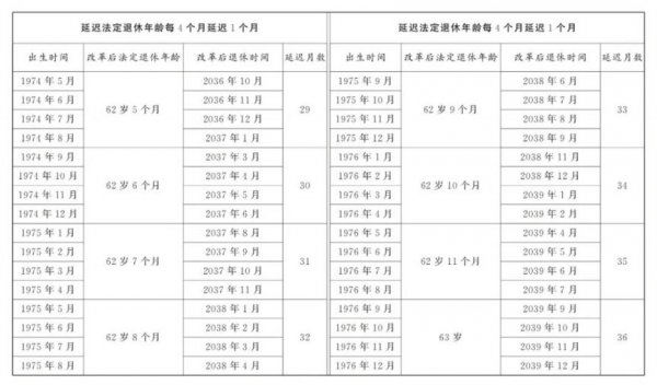 1. "渐进式延迟":每年延迟几个月,直至达到新的退休年龄。 2. "男女平等":逐步将男女退休年龄统一。