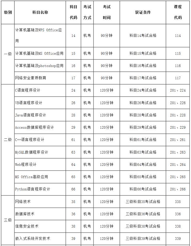 6. 选择考试科目,根据自身情况选择一级、二级或三级考试。