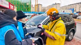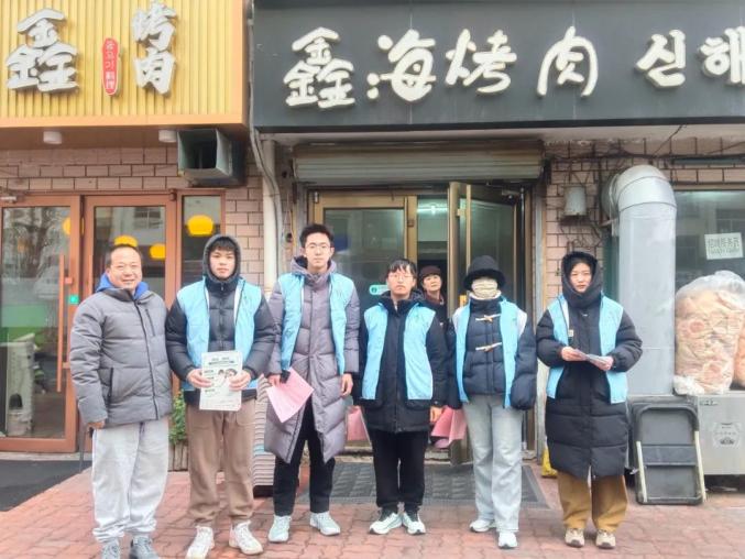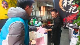 活动第一个环节,绿色之旅志愿服务团队的大学生志愿者走上街头、走进商铺,向过往群众和商户们发放低碳过节倡议书和“无废城市”科普宣传材料,鼓励公众践行绿色低碳生活。