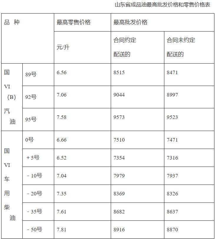 根据国家发展改革委发布的调价信息,自2025年1月2日24时起,山东省汽油、柴油最高批发、零售价格每吨均上涨70元。调整后山东省各标号汽、柴油最高批发和最高零售价格及有关事项见附表。