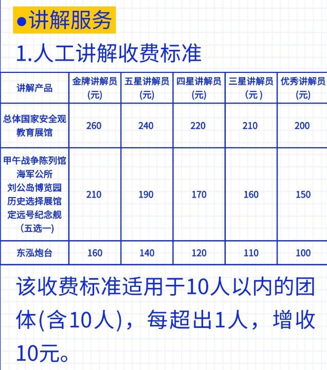 刘公岛景区讲解服务分人工讲解、手机自助导览服务、AR剧本游等。