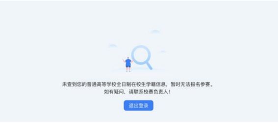 5.若出现“未查到您的普通高等学校全日制在校生学籍信息,暂时无法报名参赛”的信息,可以联系校赛负责人进行咨询,确认是否为全日制在校生、学信网账号是否有学籍信息等。