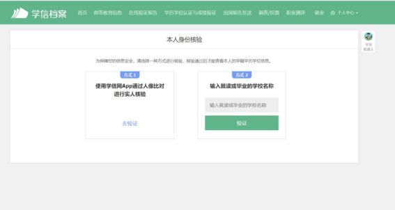 4.登录成功后,若学生身份未核验,则需要按要求在“学信档案”页面中进行身份核验后再次重新登录。